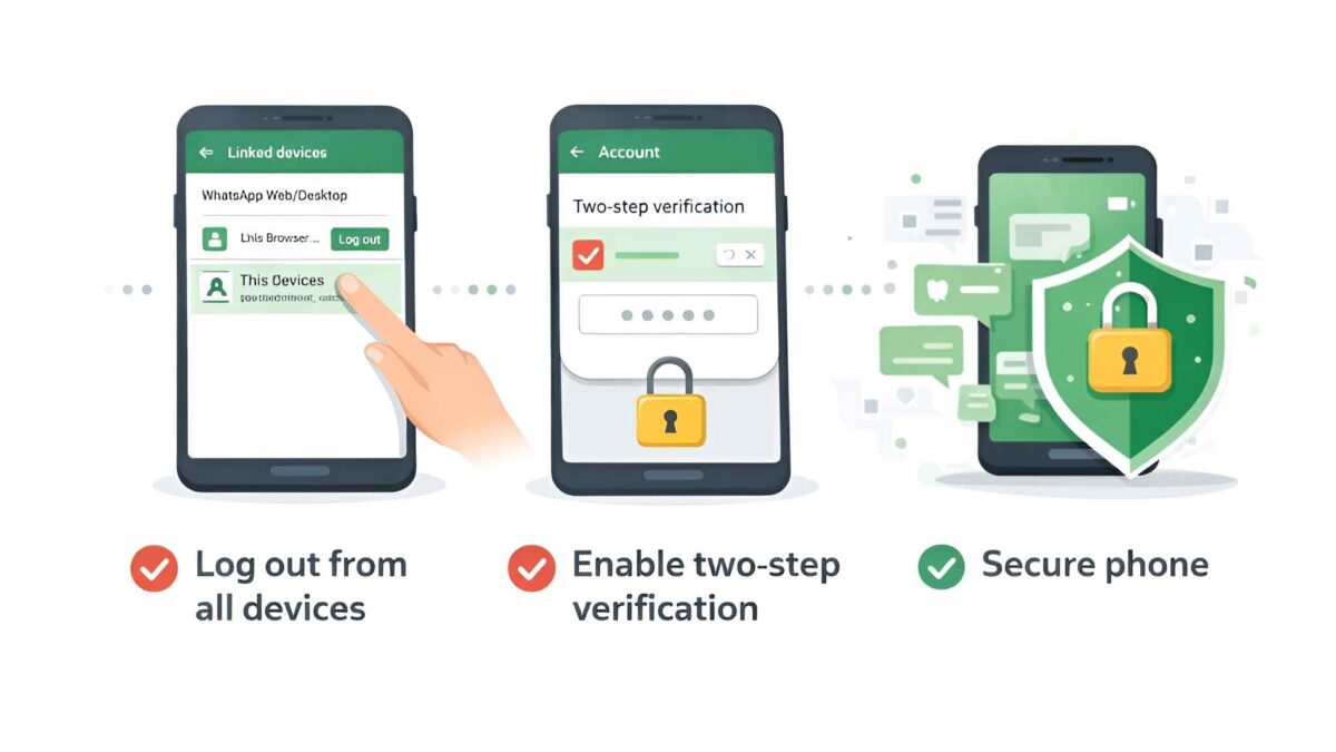 • WhatsApp → Settings → Linked Devices → Log out from all devices